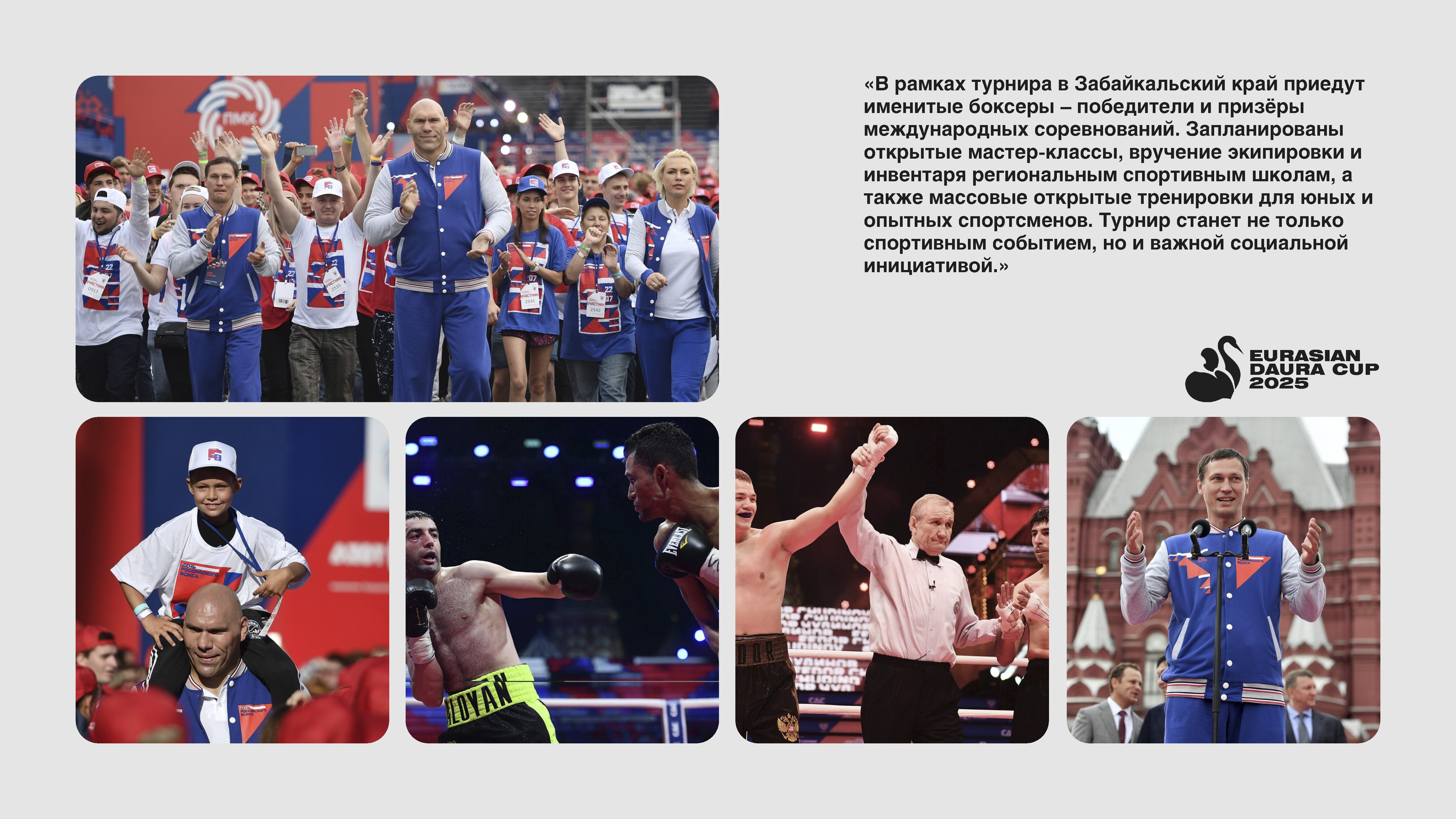 Приедут в Забайкалье и звёзды мирового бокса. Мастер-классы проведут Александр Поветкин, Альберт Батыргазиев, Орзубек Назаров, Руслан Проводников и другие титулованные чемпионы!