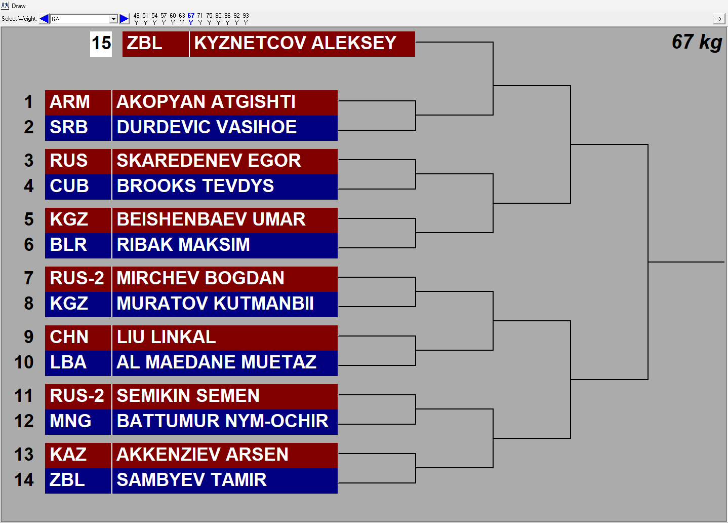 7 | КУЗНЕЦОВ АЛЕКСЕЙ ЕВГЕНЬЕВИЧ | КАПУСТИН А. В. БОРОВСКИЙ А. Н. | 67 КГ |