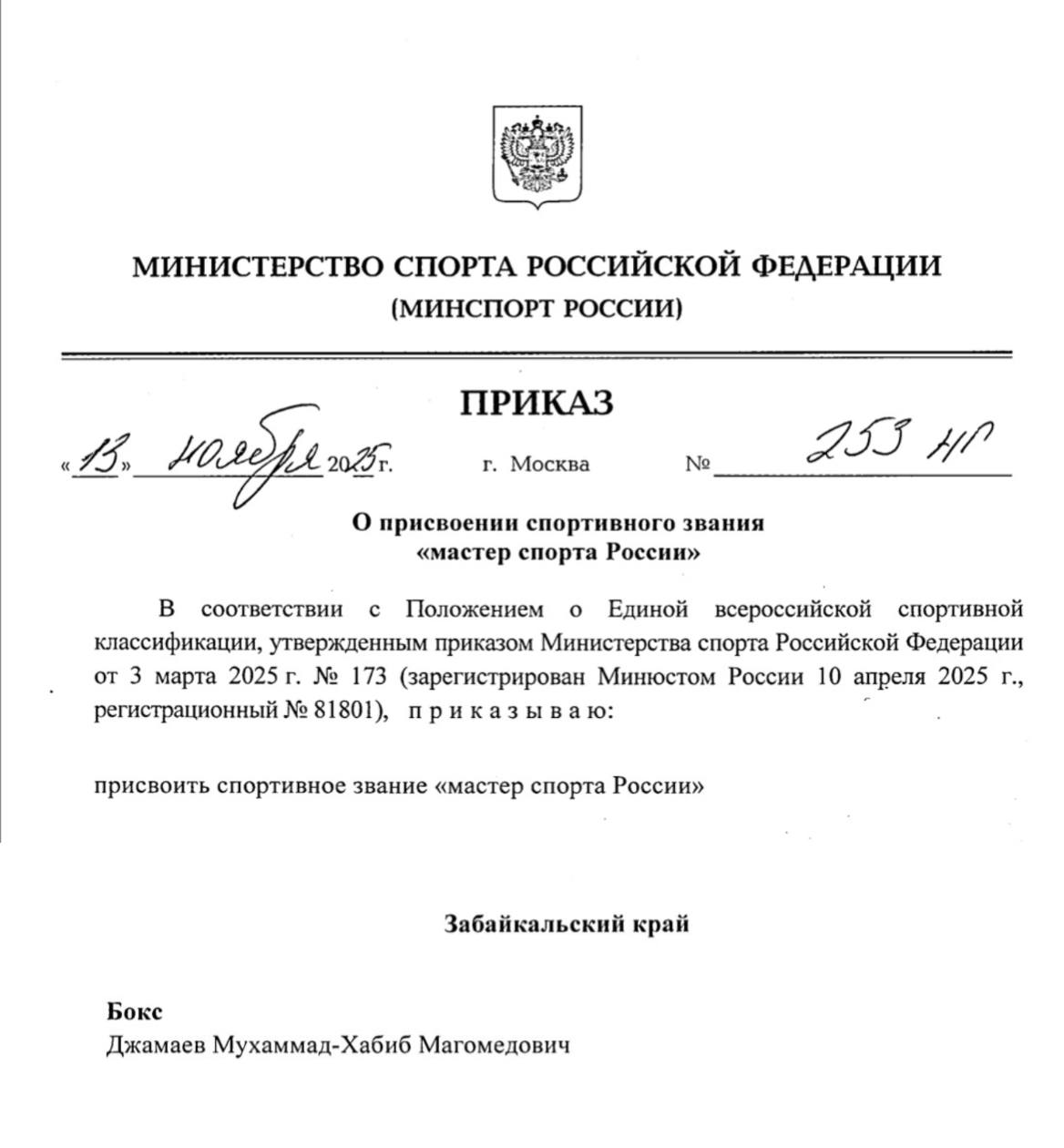- В 2025 году Дмитрию Двали было присвоено звание заслуженного мастера спорта России.