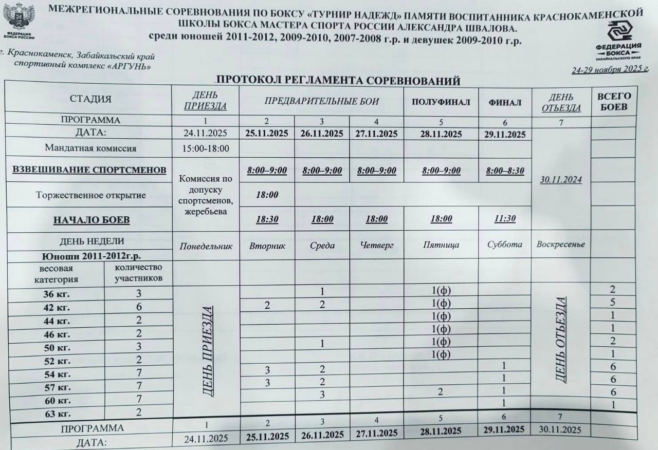 Календарь соревнований Федерации бокса Забайкальского края на 2025 год