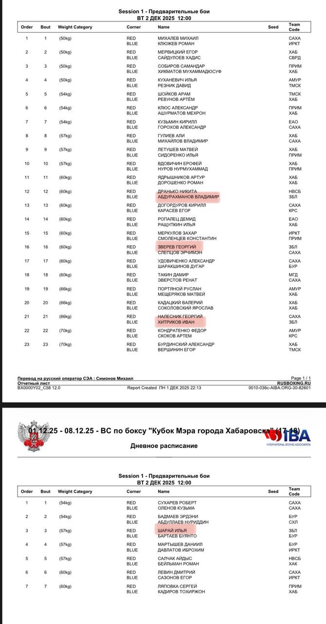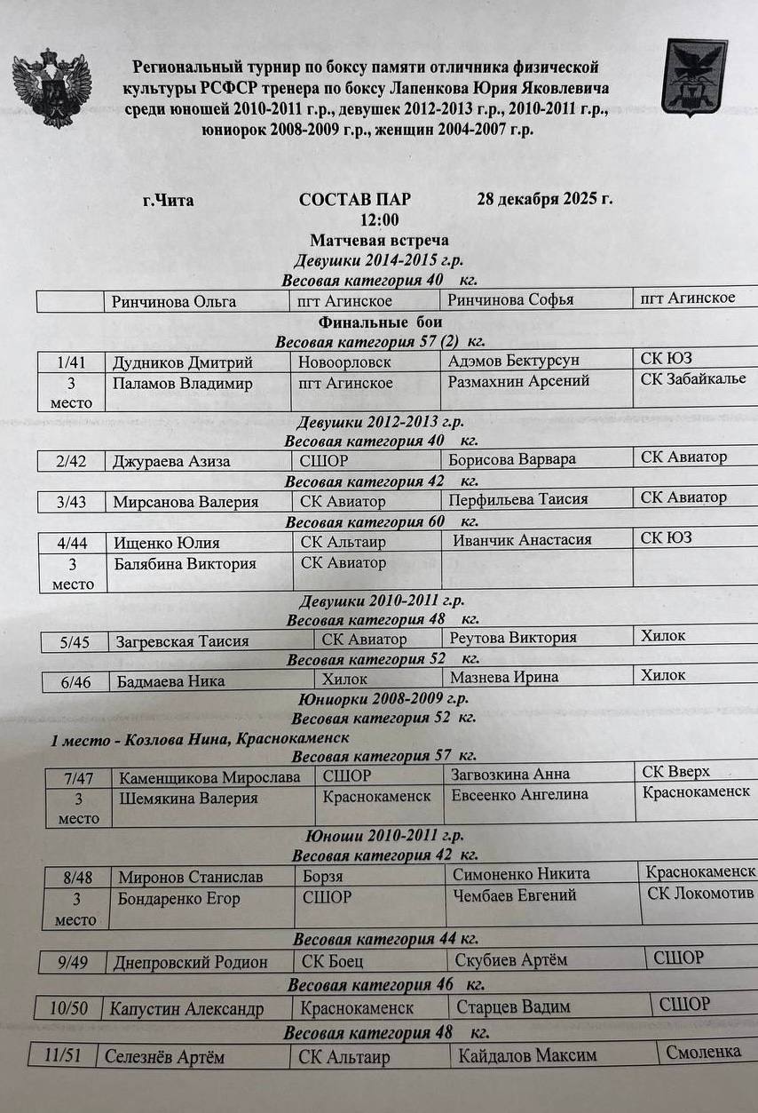Регламент и состав пар на первый день региональных соревнований по боксу среди юношей 2010-2011 г.р. и девушек всех возрастов к 90-летию со дня рождения Юрия Яковлевича Лапенкова🏆🥊