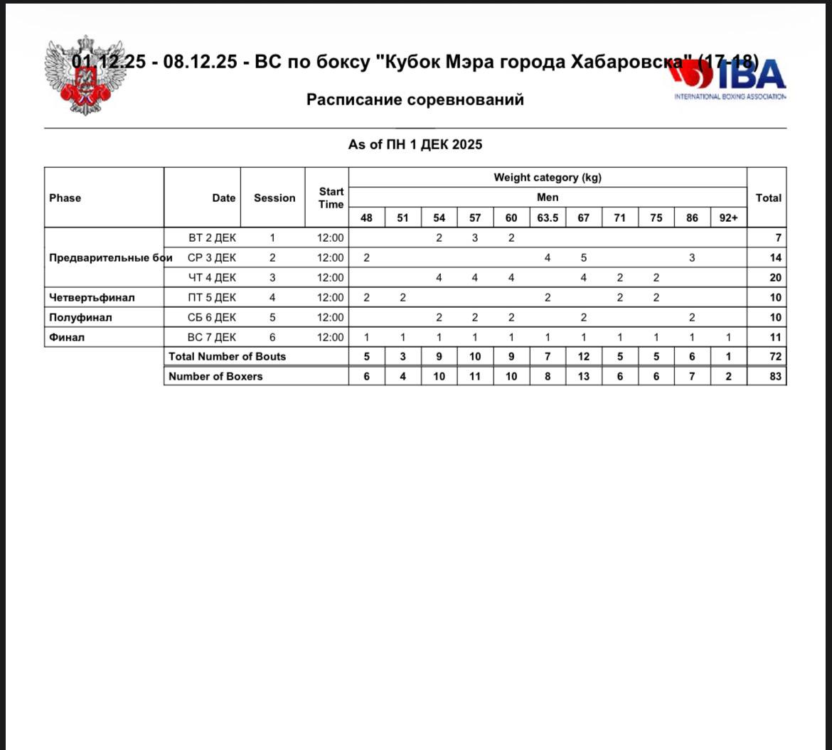 Соревнования станут отбором к первенствам Дальневосточного округа по боксу, которые пройдут у юношей 13-14 лет в период с 11 по 17 марта в городе Благовещенск и в период 01 по 06 апреля у юниоров 17-18 лет в городе Петропавловск-Камчатский.