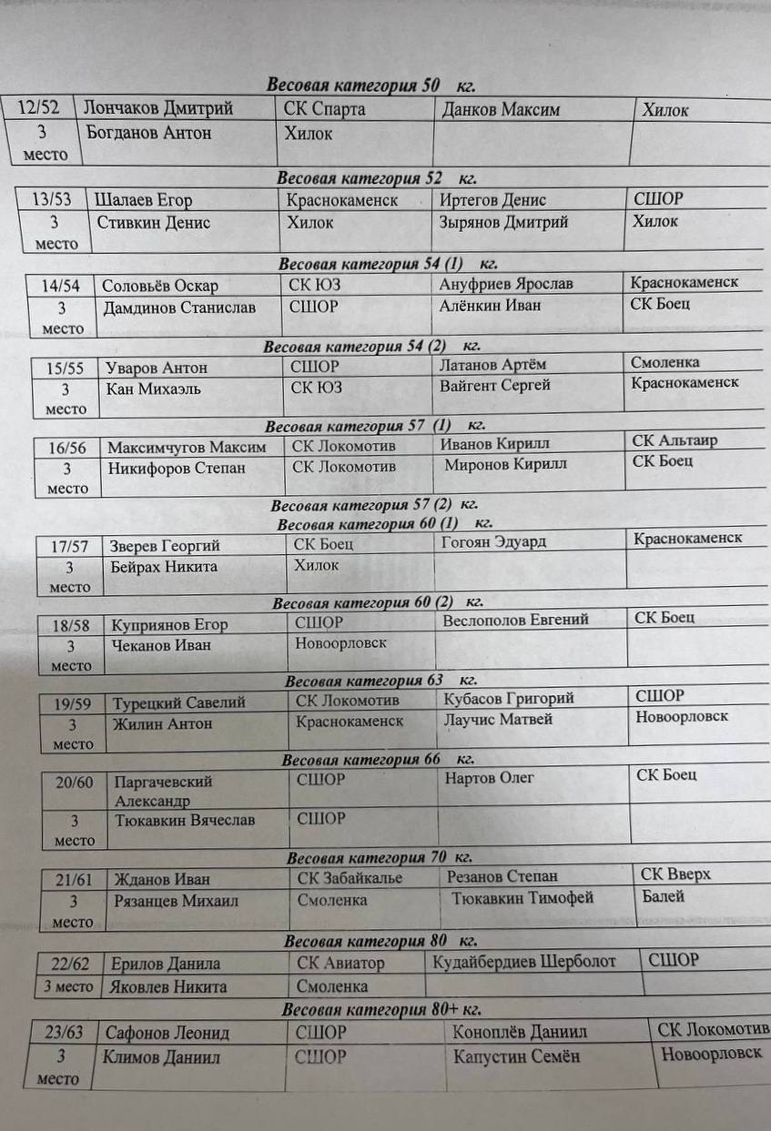 в/к 57 кг 🥇- Абдурахманов Владимир (Борзя) 🥈- Ахмедшин Кирилл (Ш. Гора).
