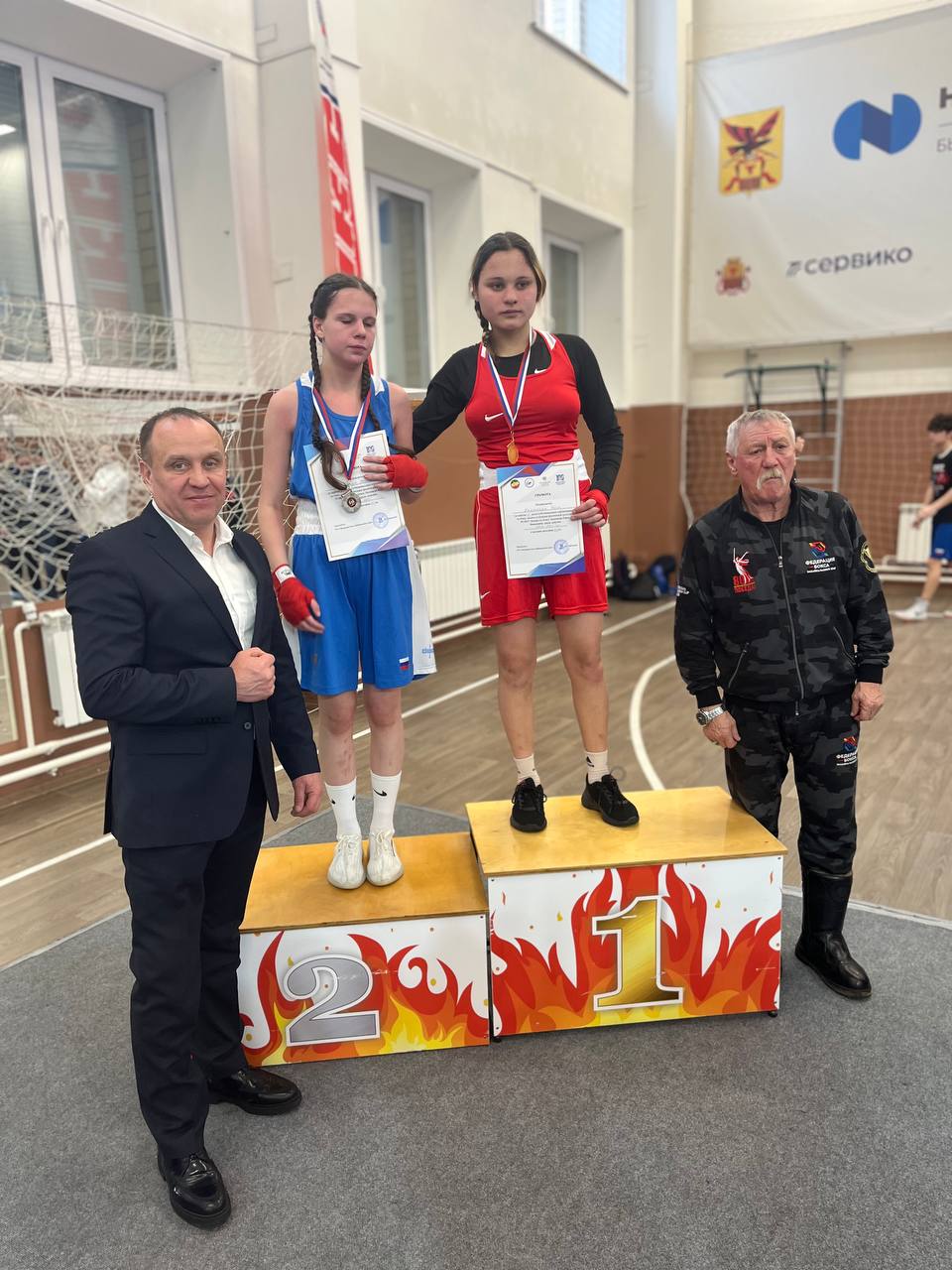 - Башкаева Евгения в/к 48 кг и Башкаева Екатерина в/к 48 кг., уступили боксёрам из Республики Саха(Якутия) и Приморского края соответственно.
