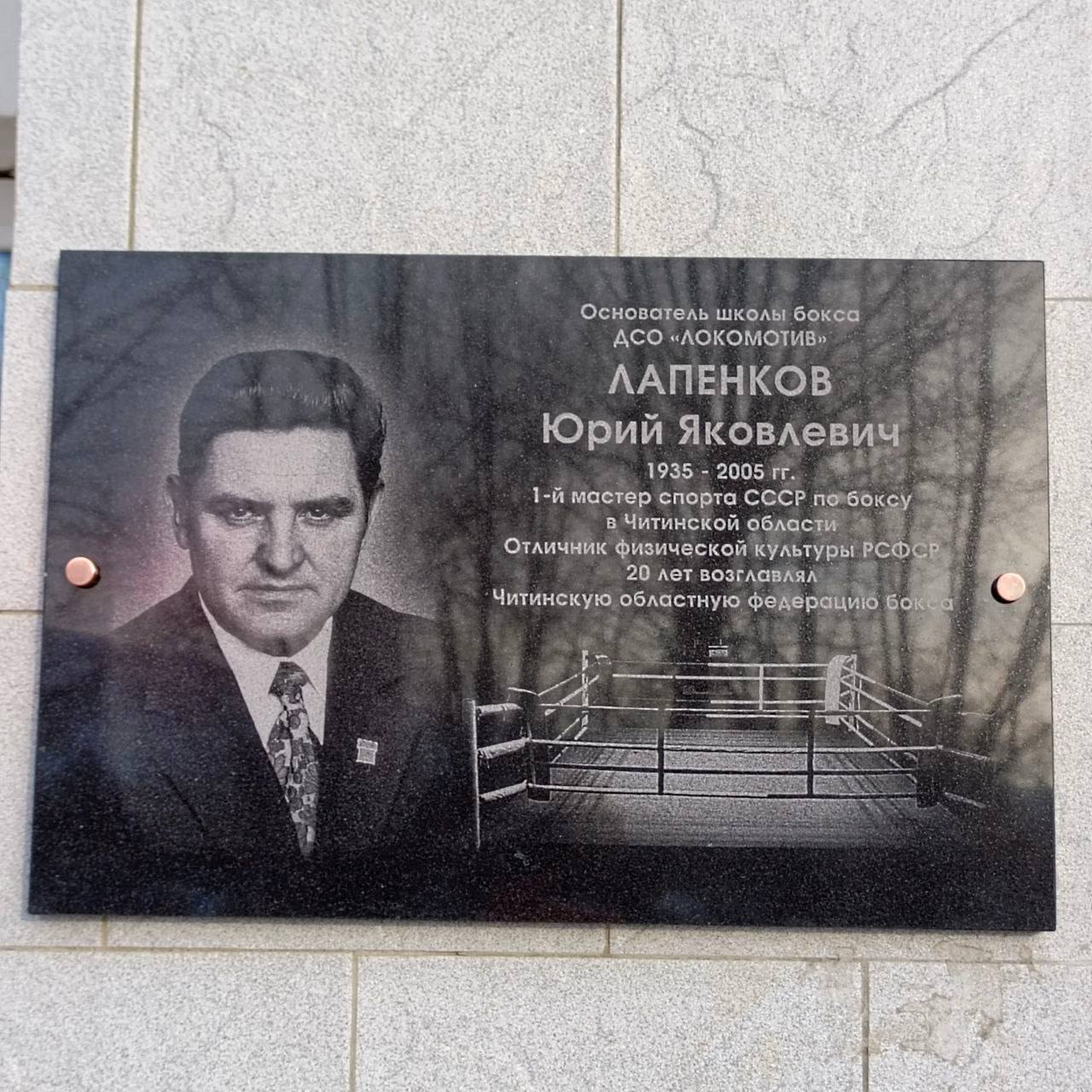 Сегодня в спортивном комплексе «Локомотив» прошло торжественное открытие памятной доски первому мастеру спорта СССР в Читинской области, отличнику физической культуры РСФСР. Тренеру, который воспитал более 12 мастеров спорта Юрию Яковлевичу Лапенкову🥊