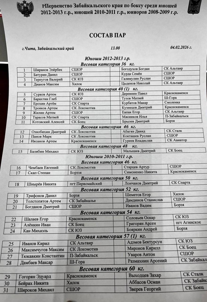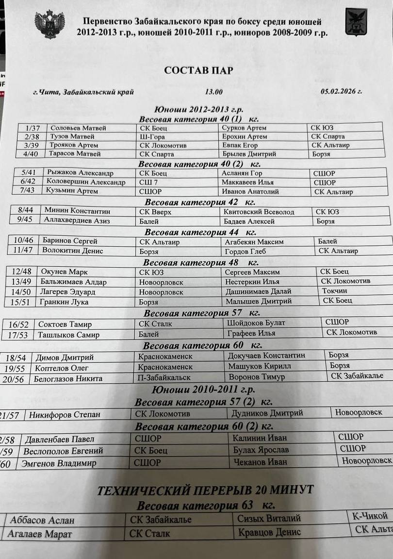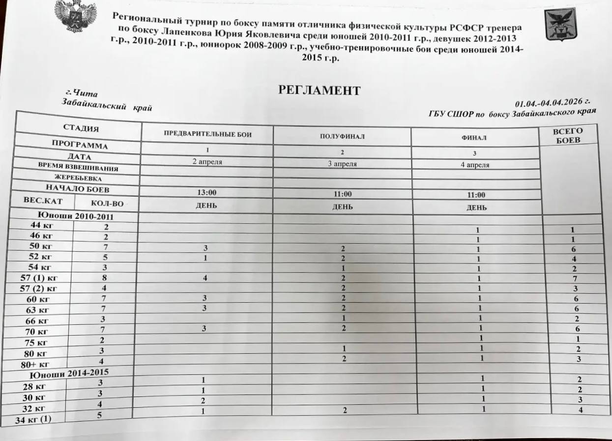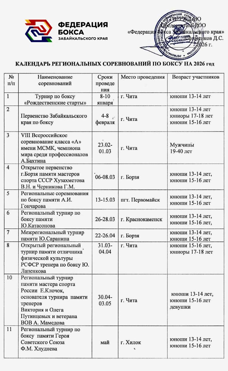 Календарь соревнований Федерации бокса Забайкальского края на 2026 год🥊