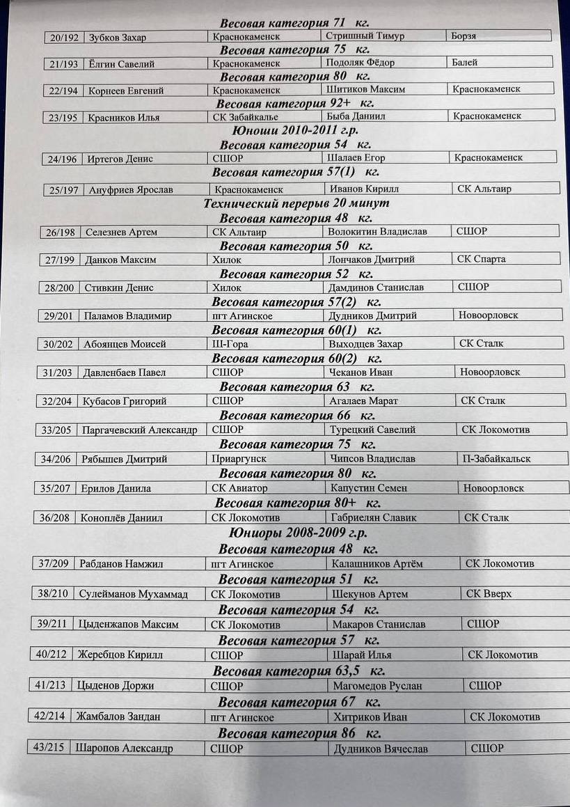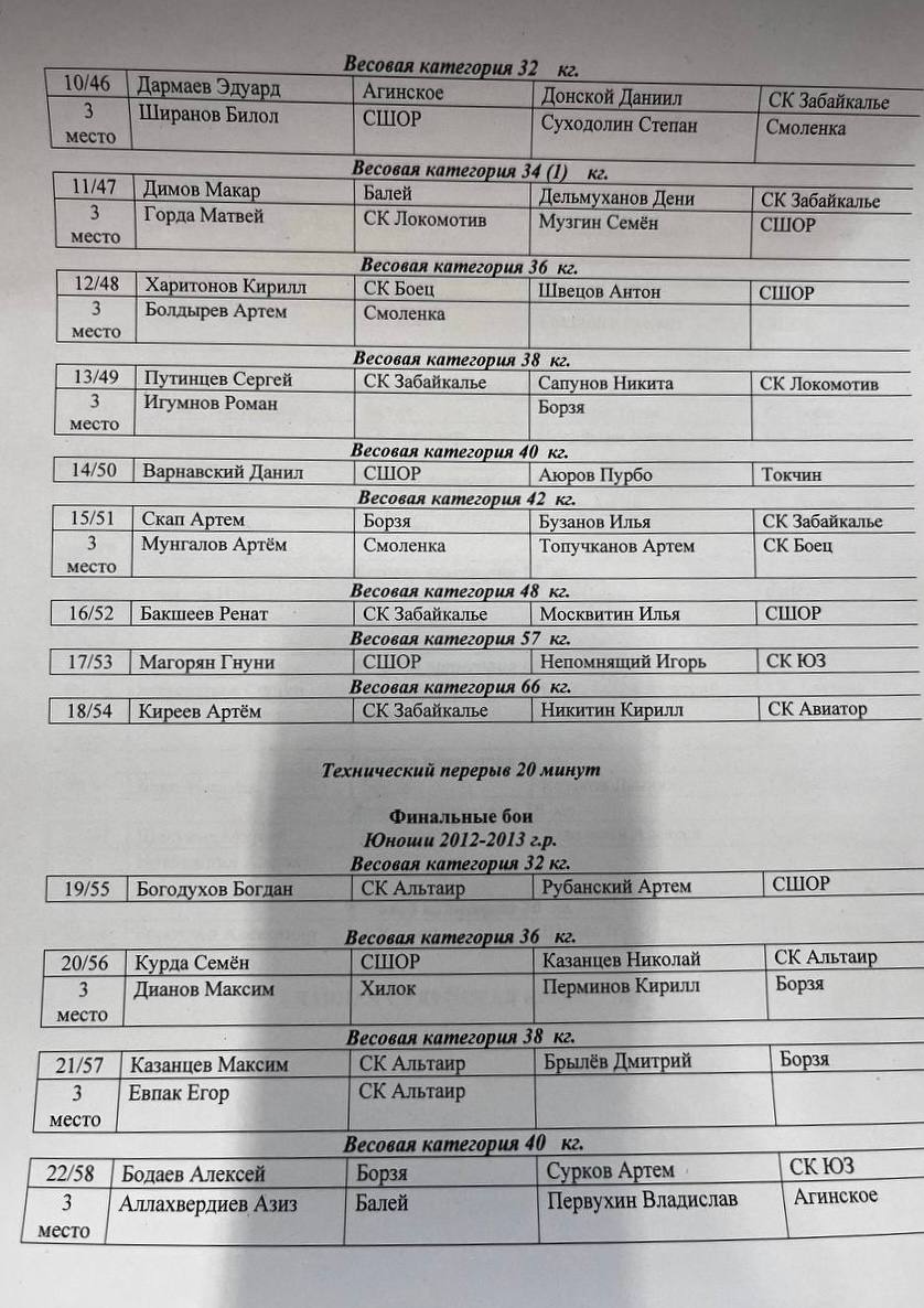 в/к 42 кг - Бузанов Илья(Чита).
