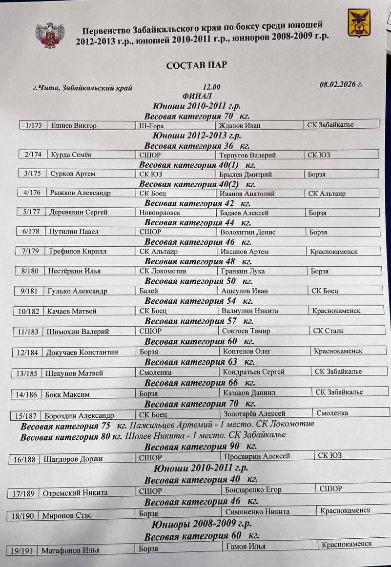 🥊После соревнований будут сформированы сборные Забайкальского края для участия в первенствах Дальневосточного федерального округа.