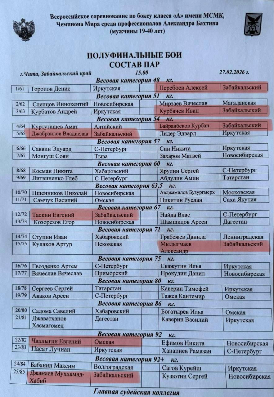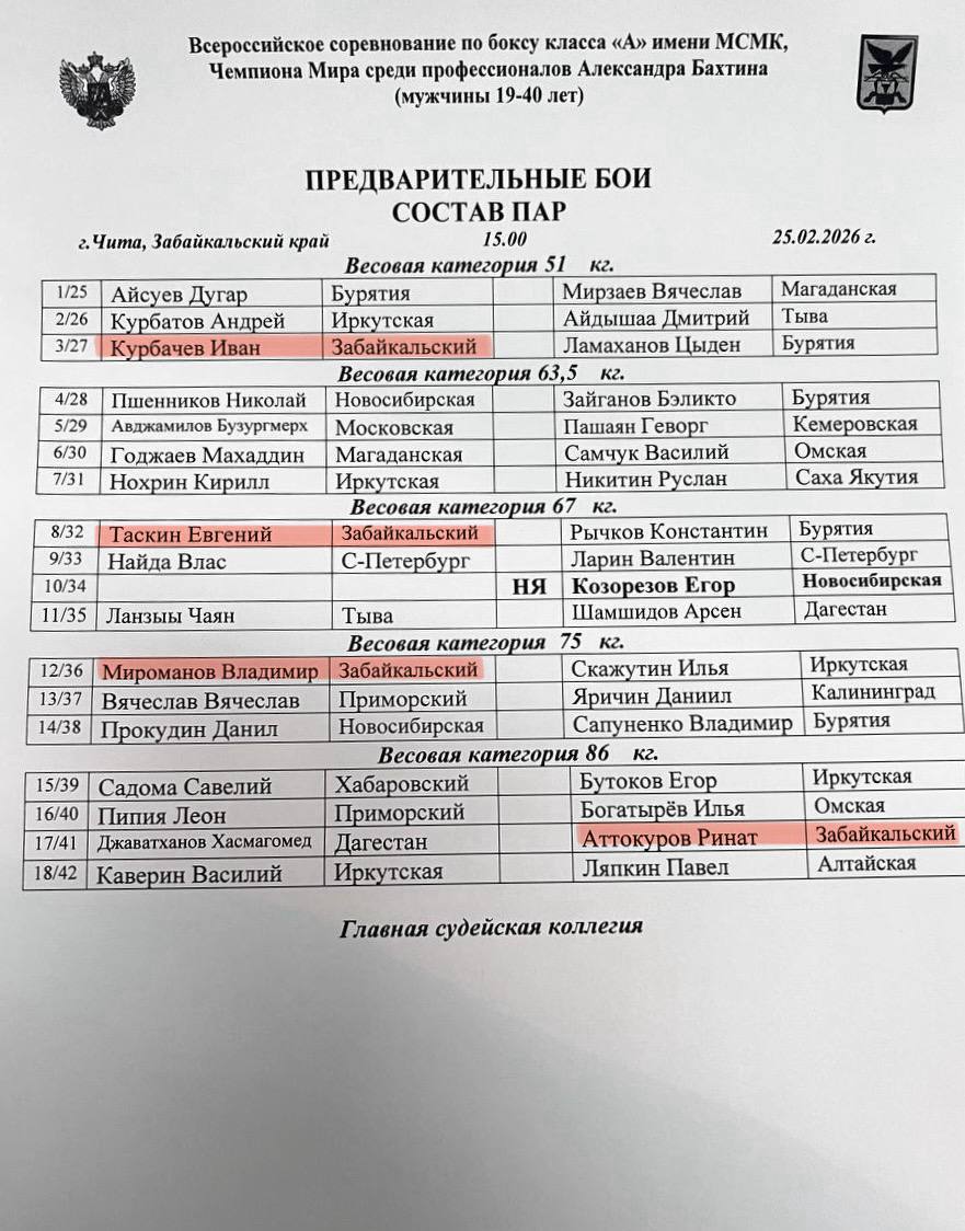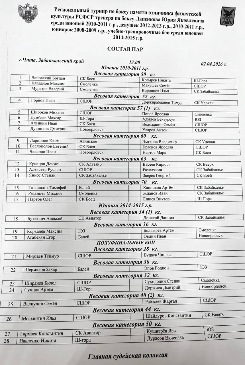 ⏰Начало поединков в 13:00 по Читинскому времени.