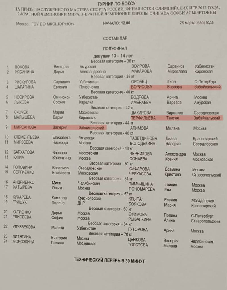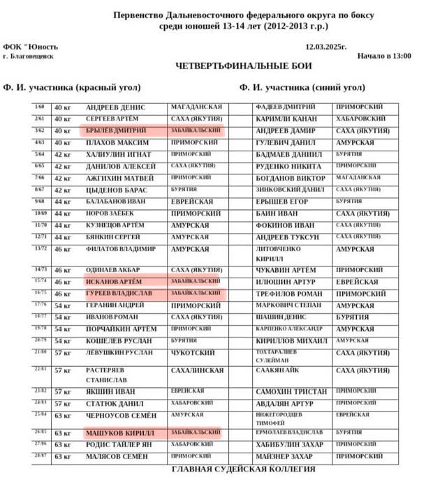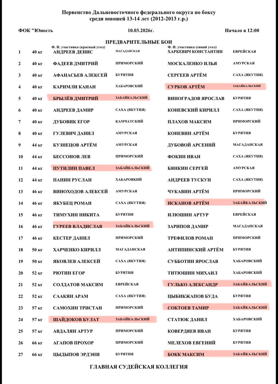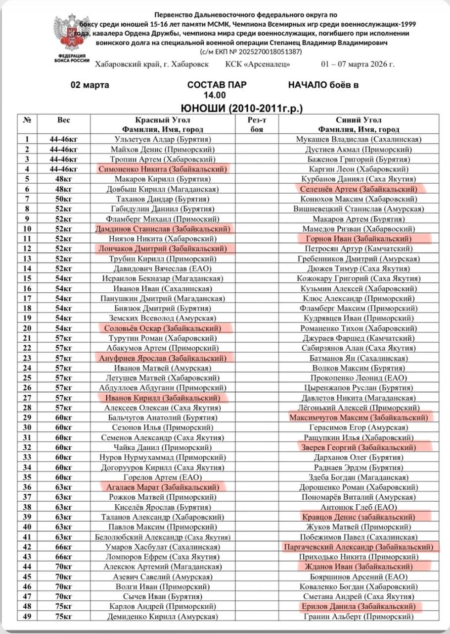 ⏰Начало поединков в 13:00 по Читинскому времени.