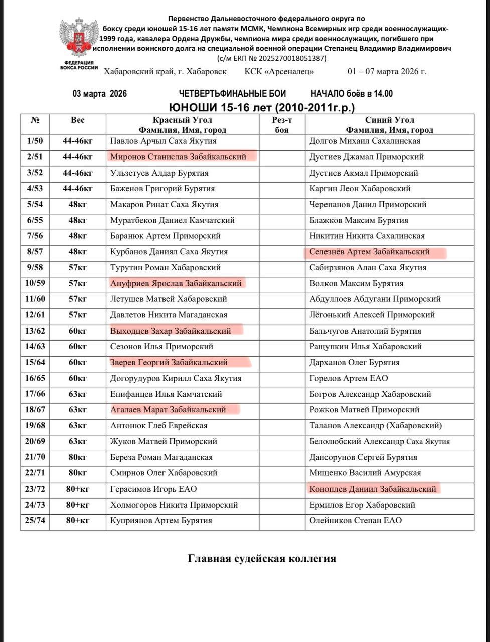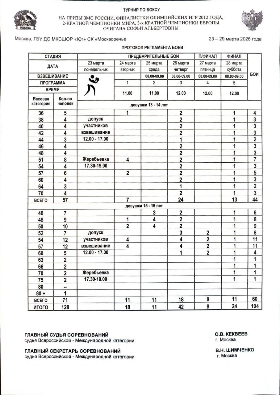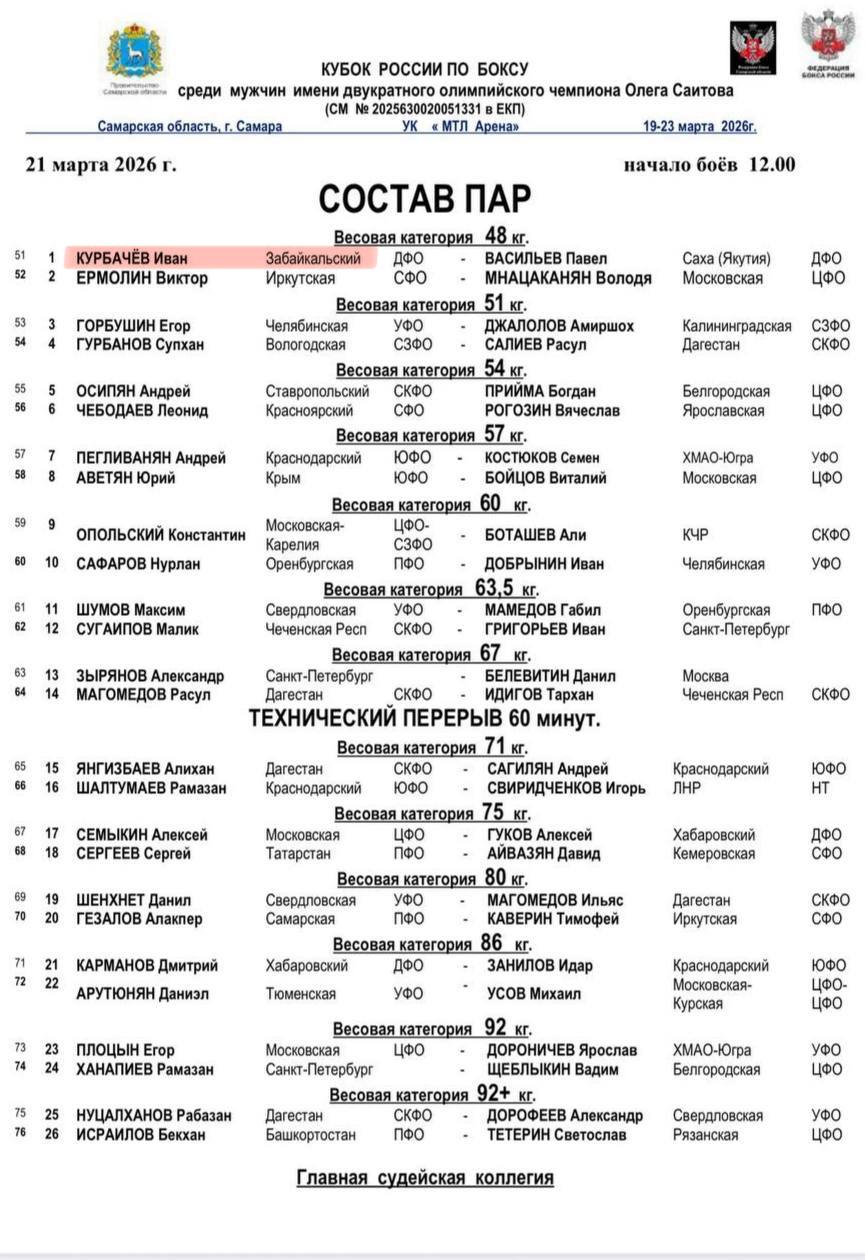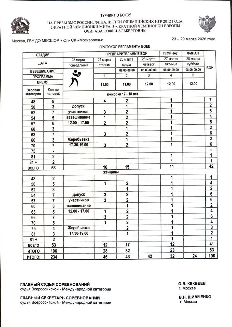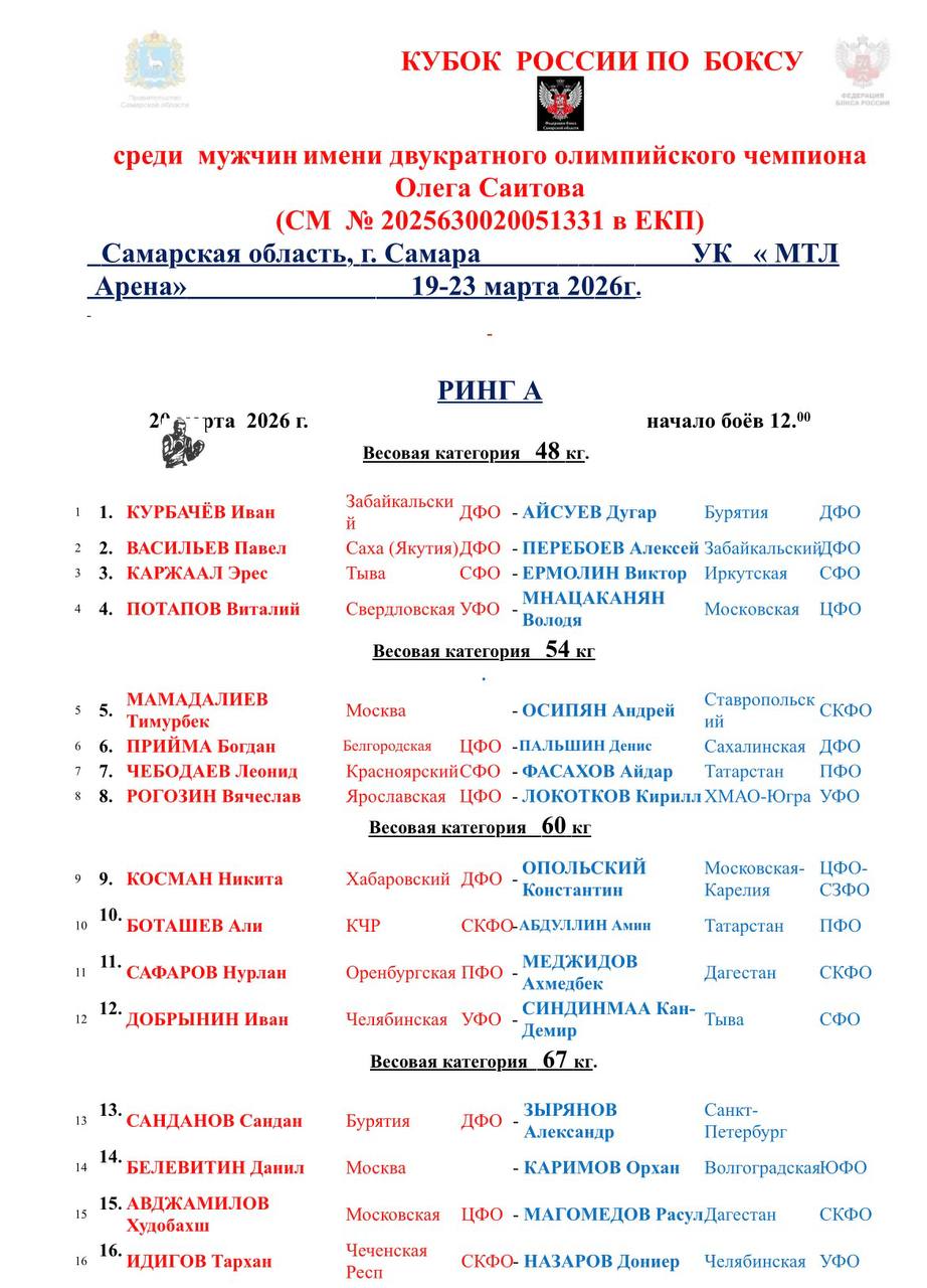 🥊Регламент и состав пар на первый день соревнований.